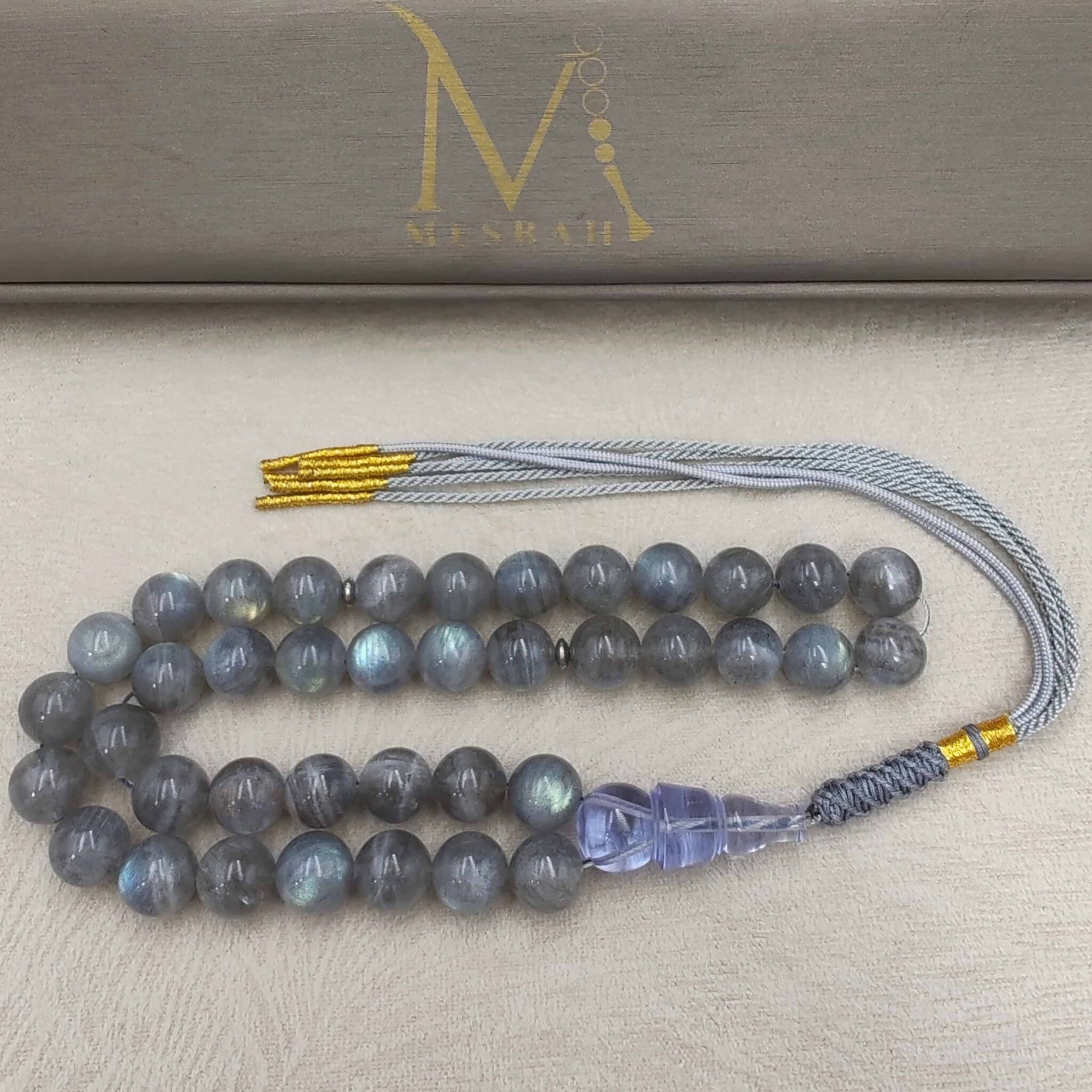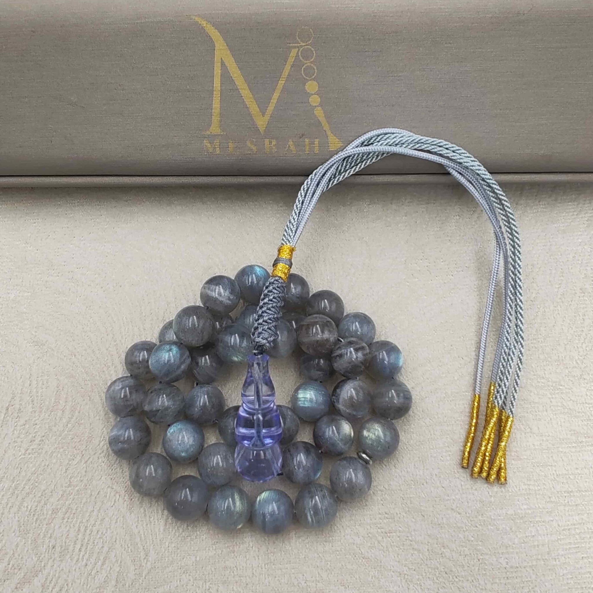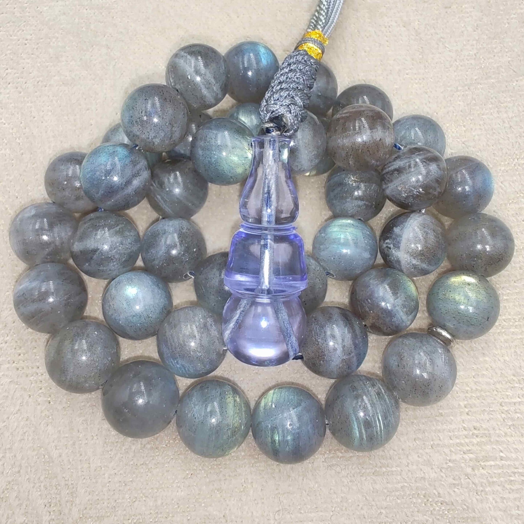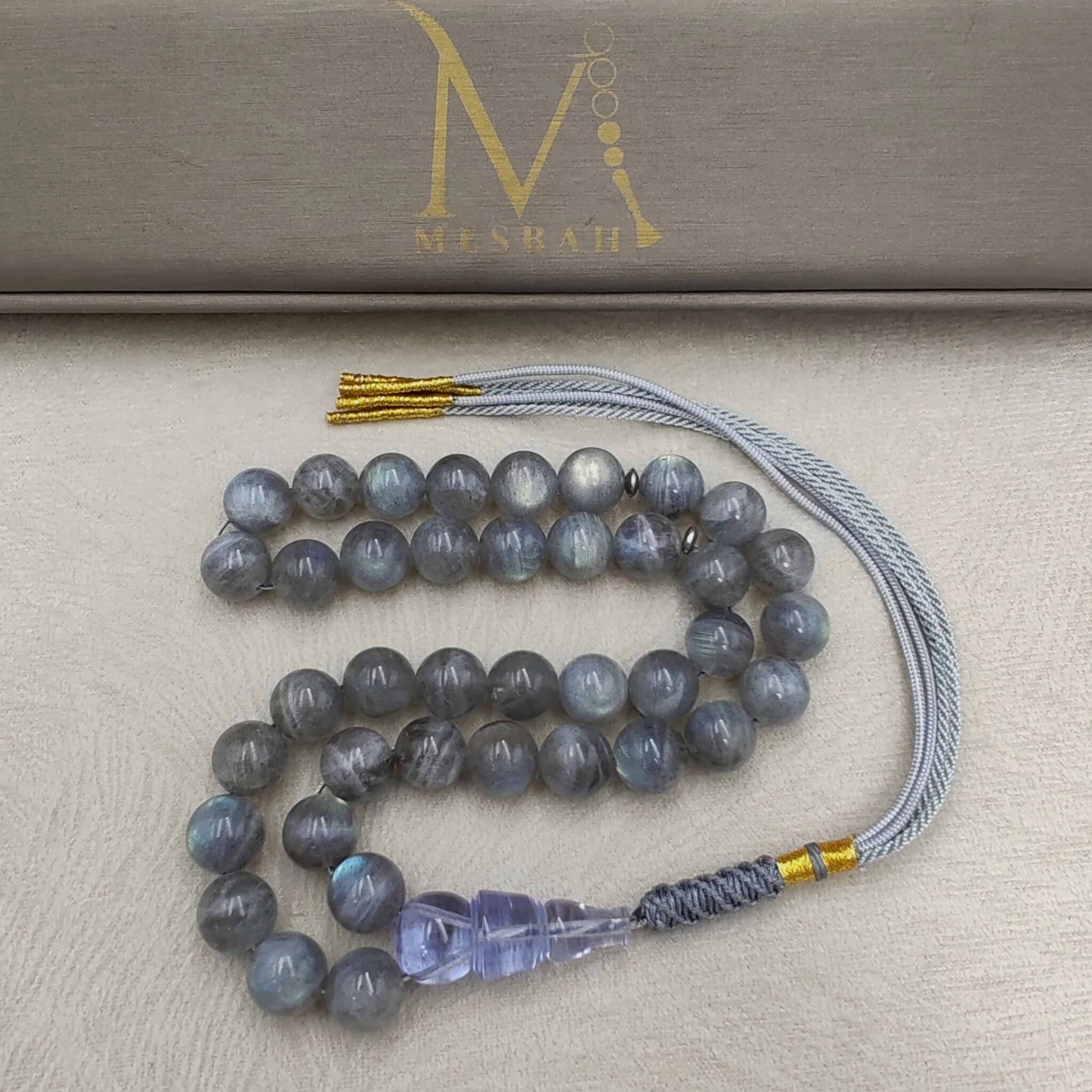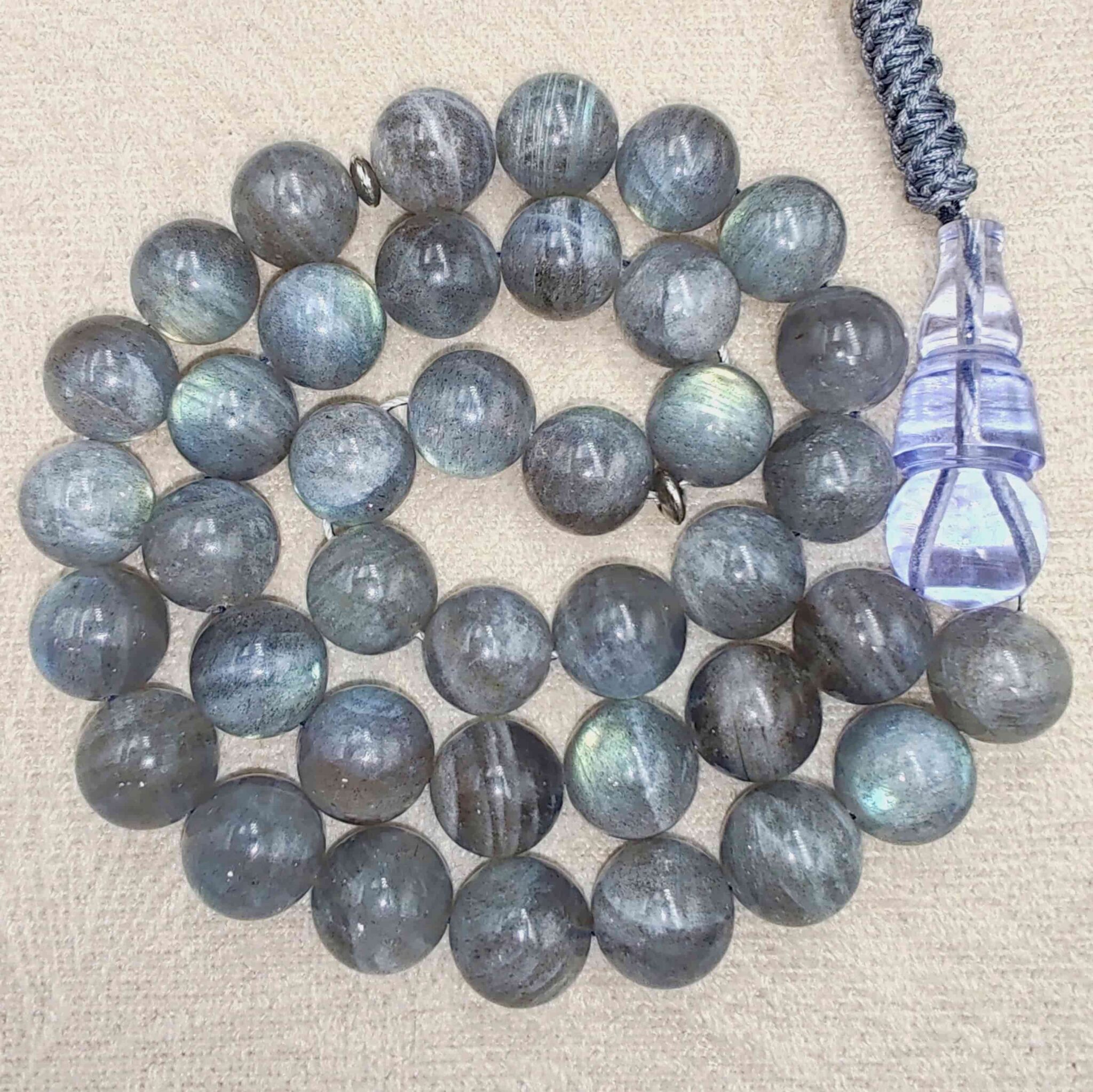 مسباح من حجر الطاووس (لابرادوريت) مع شاهد كاست