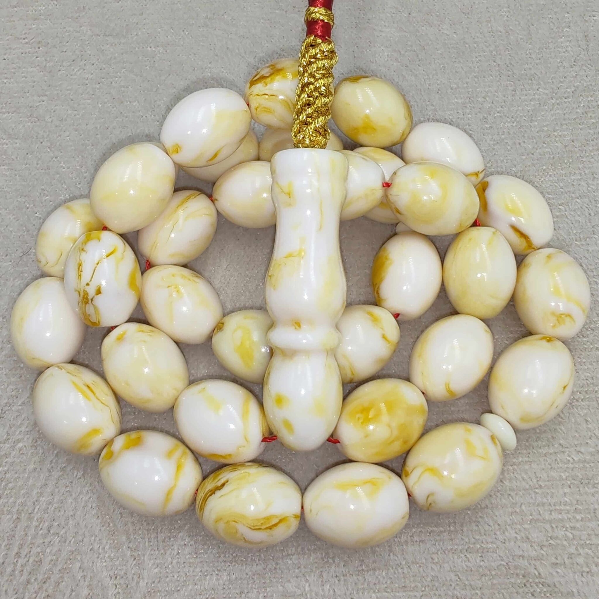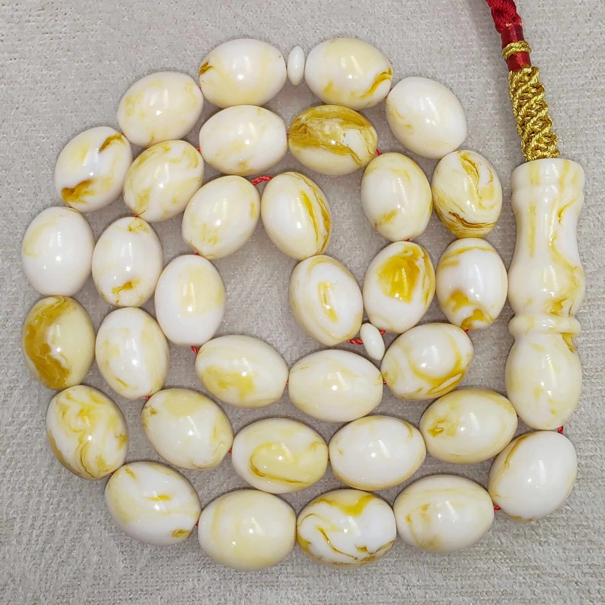 مسباح قرن ضأن كبس طبيعي جميل جدا عدد الخرز 45 خرزة قياس الخرز 10 في 12 مل الوزن 48 غرام