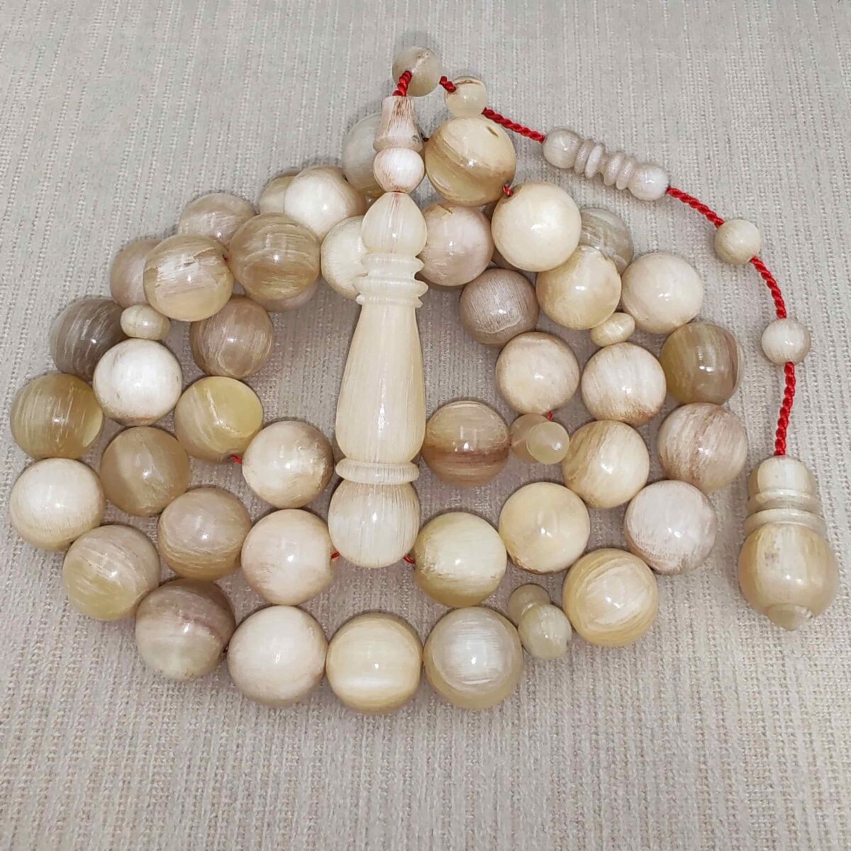 مسباح قرن الضأن الطبيعي جميل جدا عدد الخرز 47 خرزة قياس الخرز 10 مل