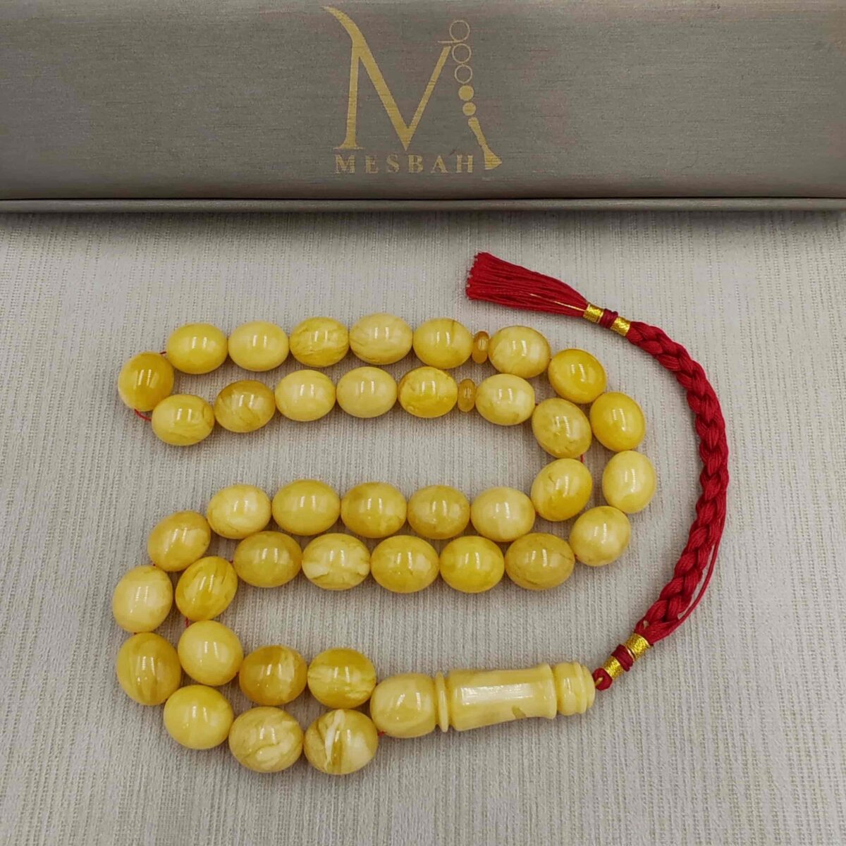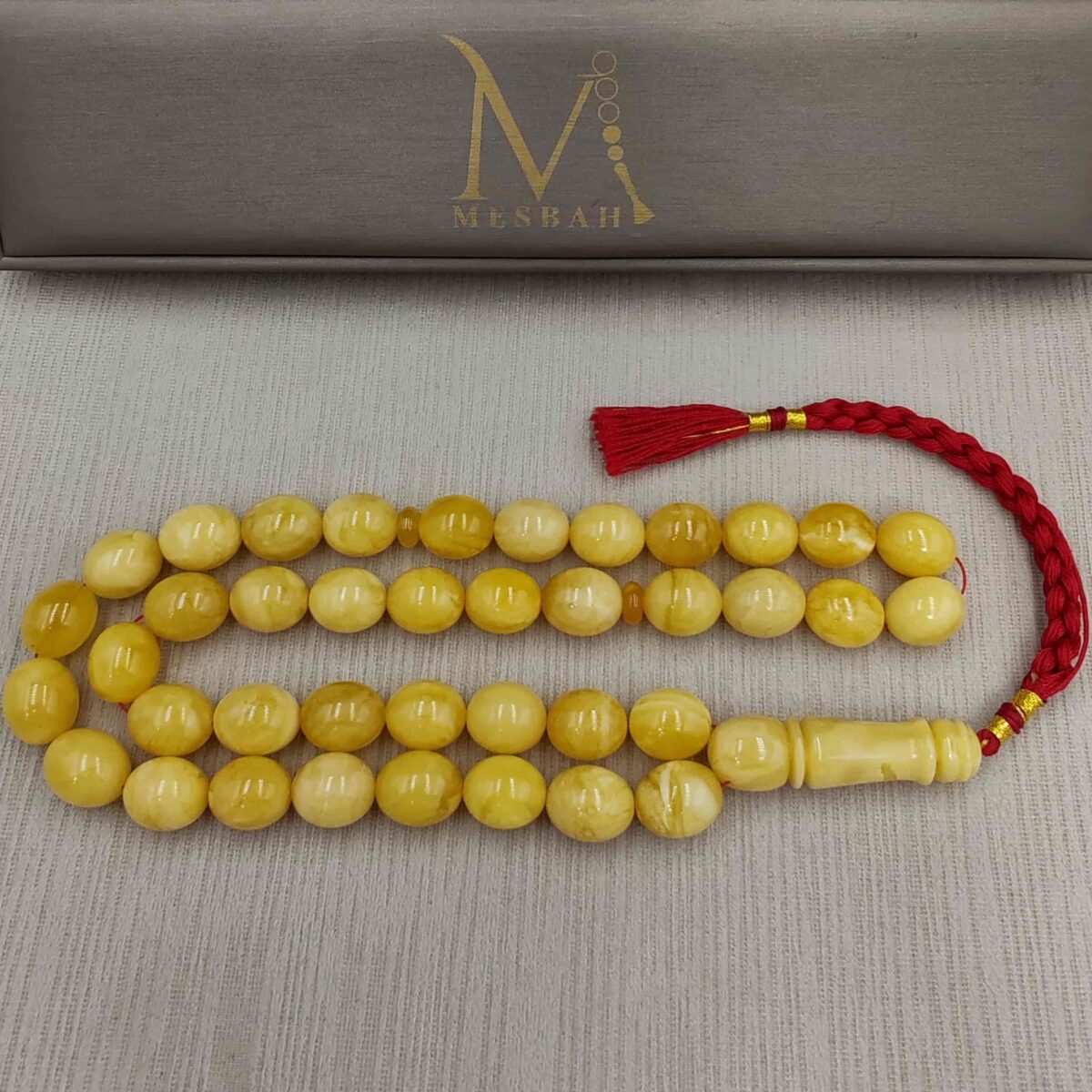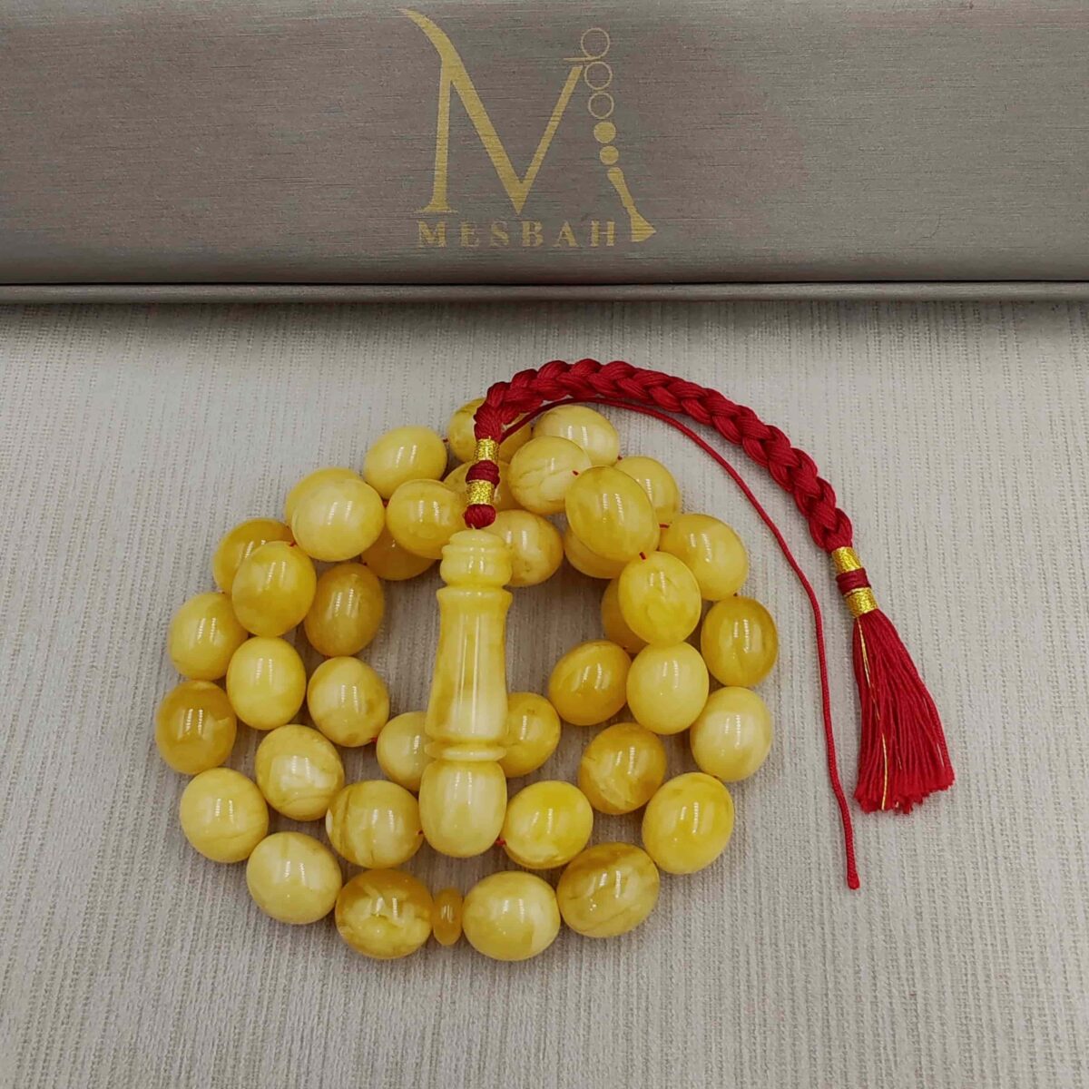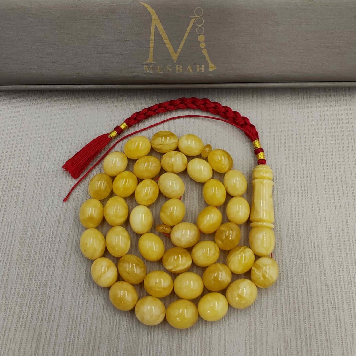 مسباح كهرمان موزاييك طبيعي مع طرابزون فضة