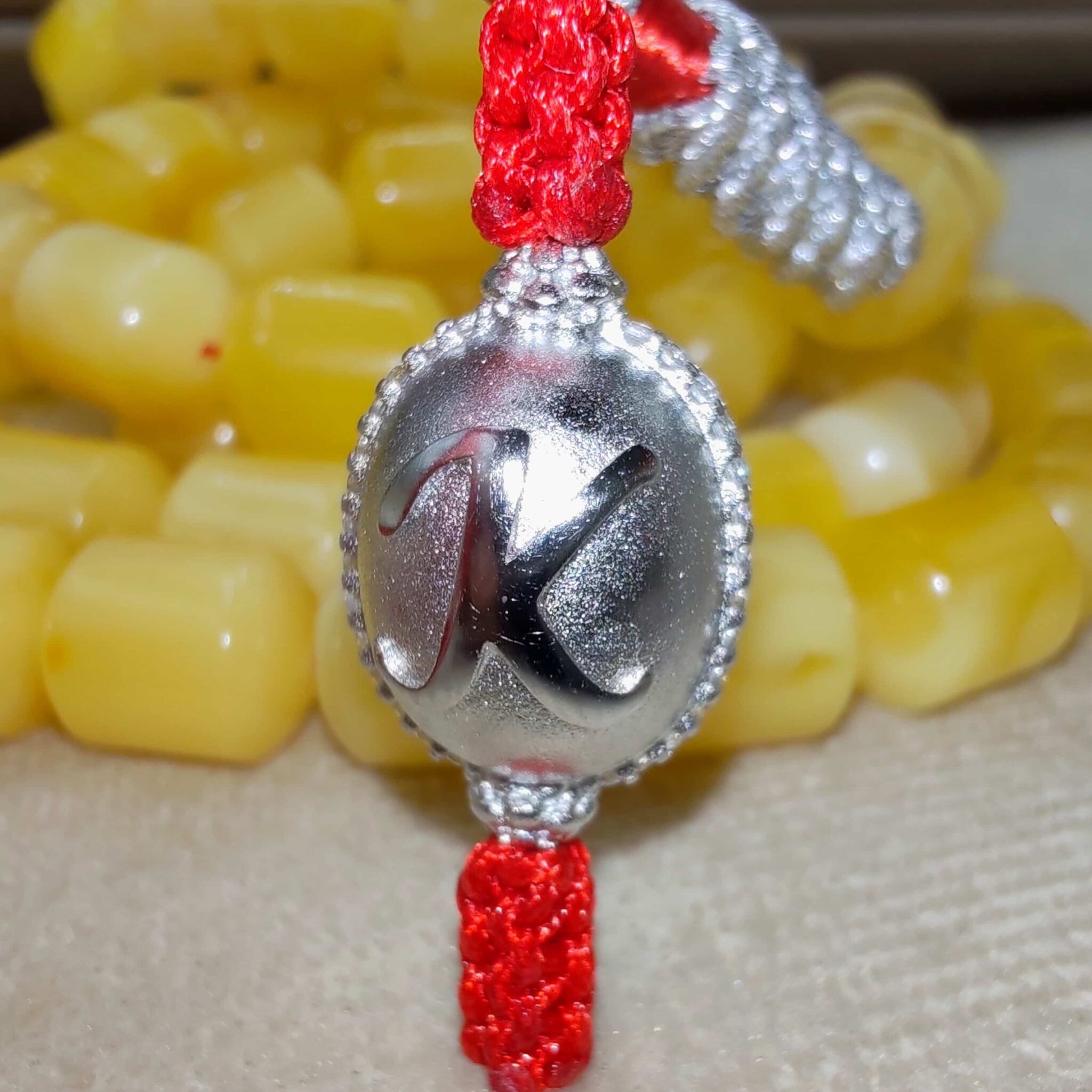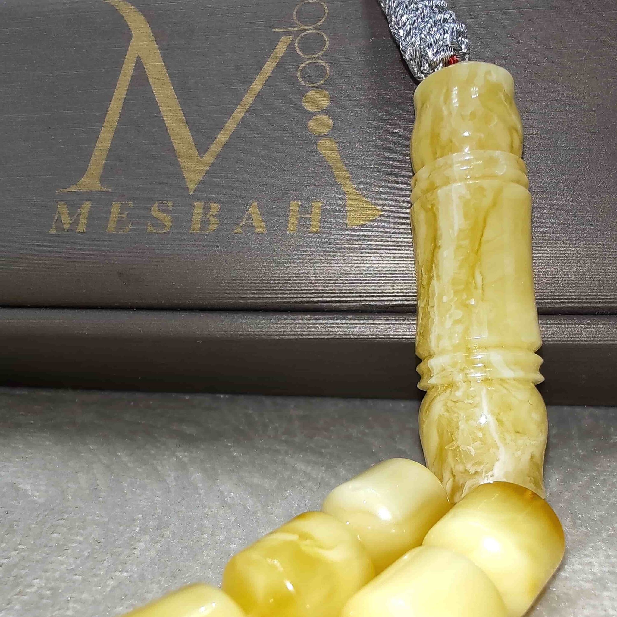 مسباح كهرمان طبيعي من نجتس لوجو الخالدي فضي