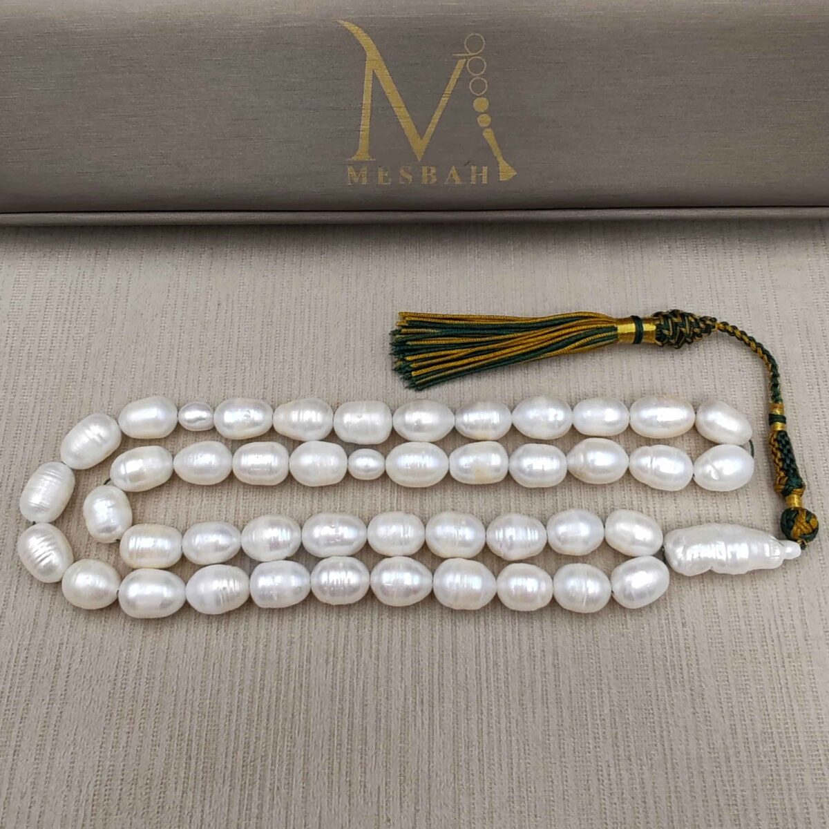 الوصف : - عدد الخرز : 51 خرزة  - قياس الخرز : 10.5 ملي - الوزن : 44 غرام