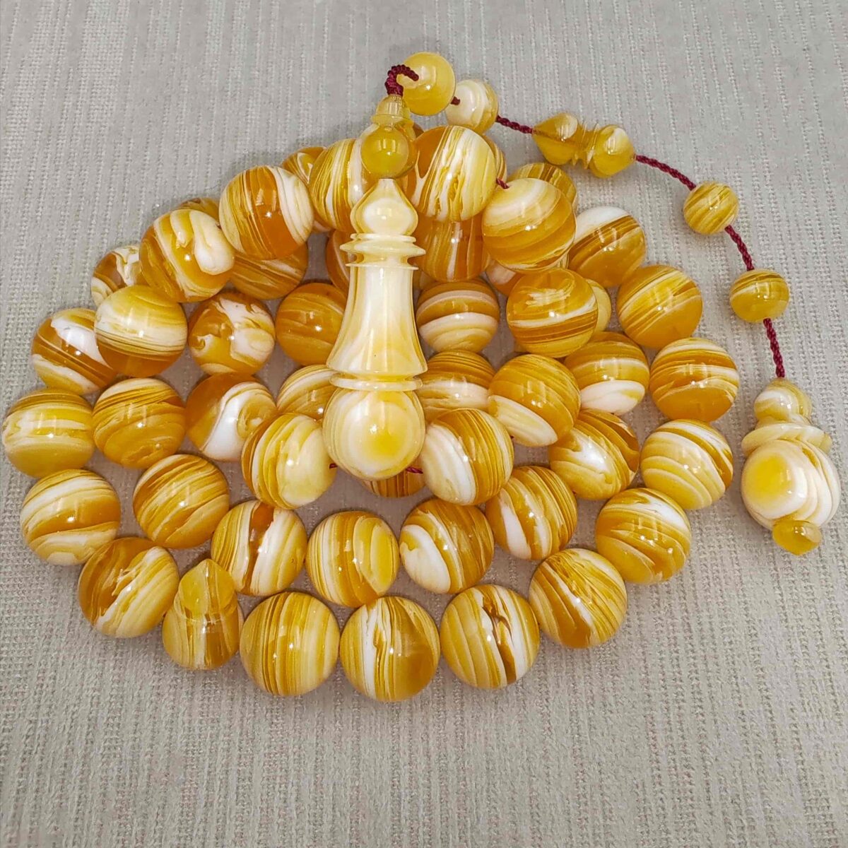 مسباح قرن ضأن كبس طبيعي جميل جدا عدد الخرز 45 خرزة قياس الخرز 10 في 12 مل الوزن 48 غرام