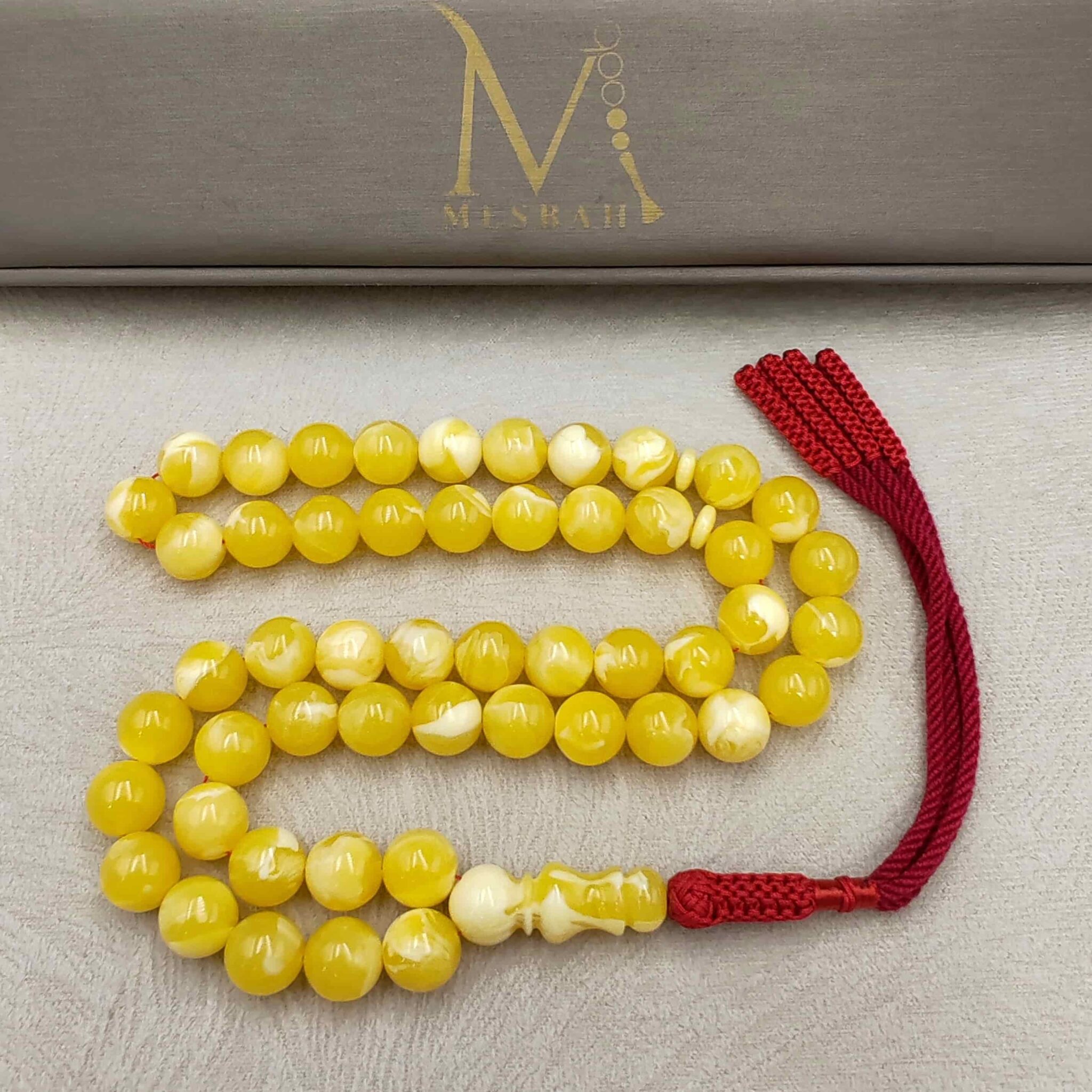Natural Compressed Lamb Horn Mesbah 39 Beads Size 12 mm