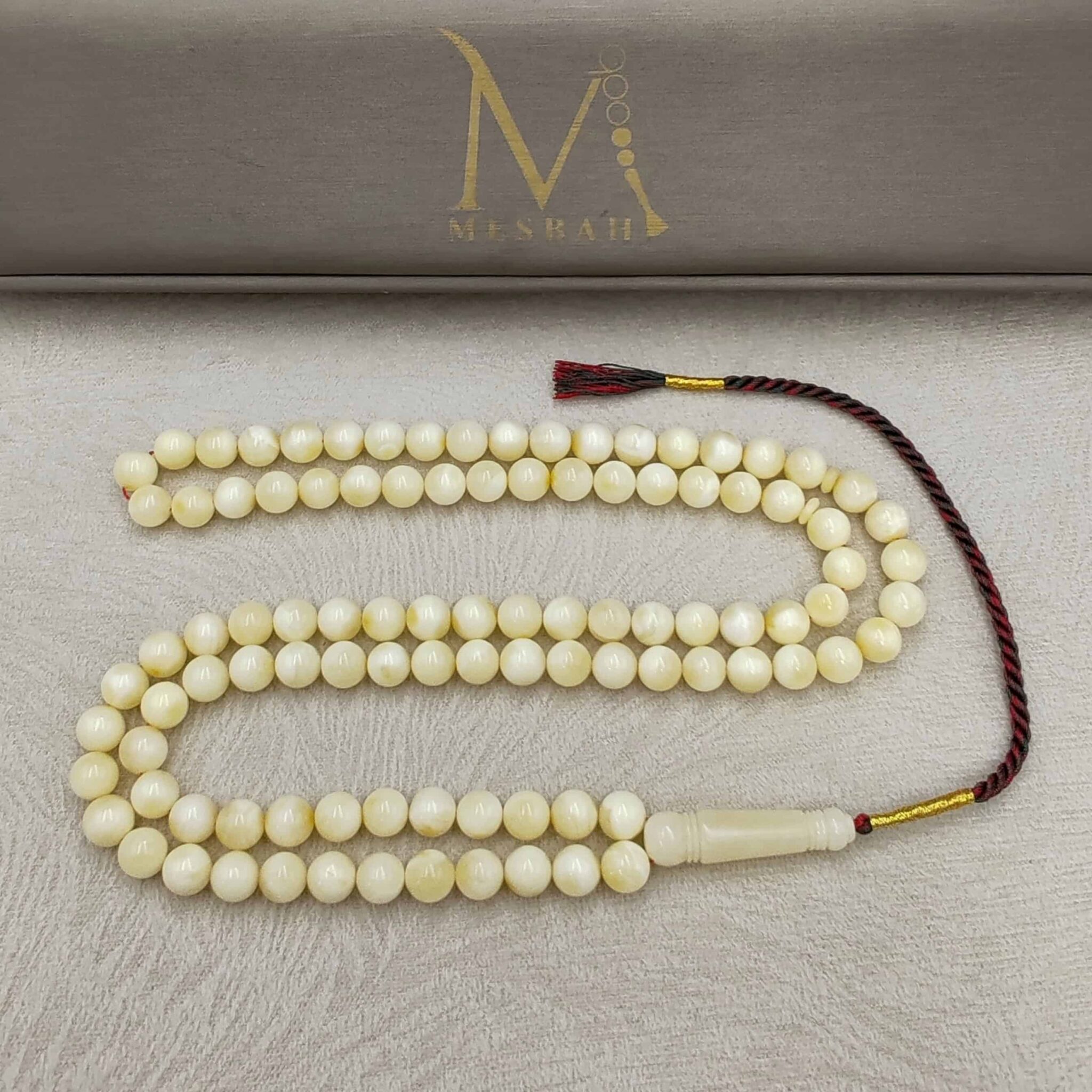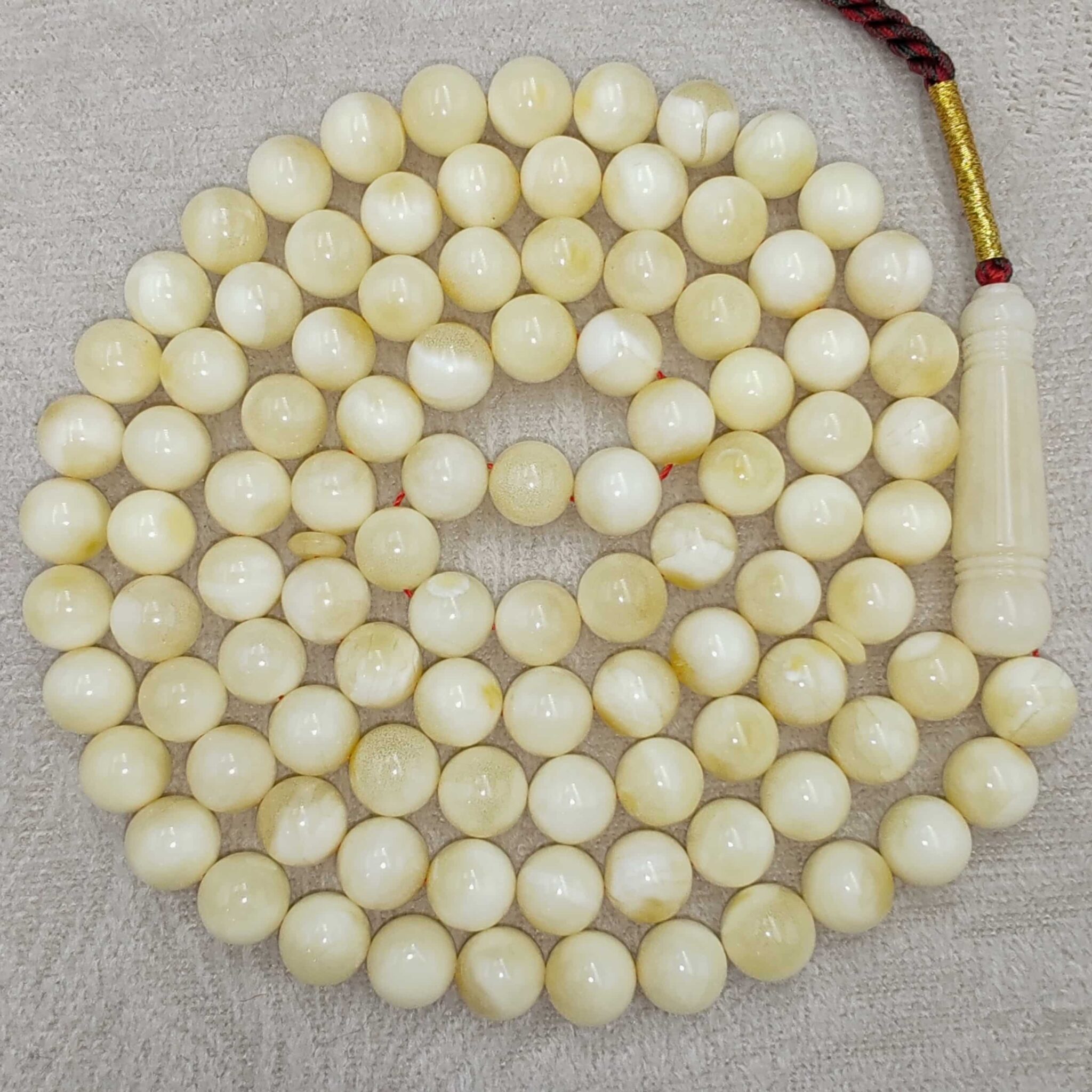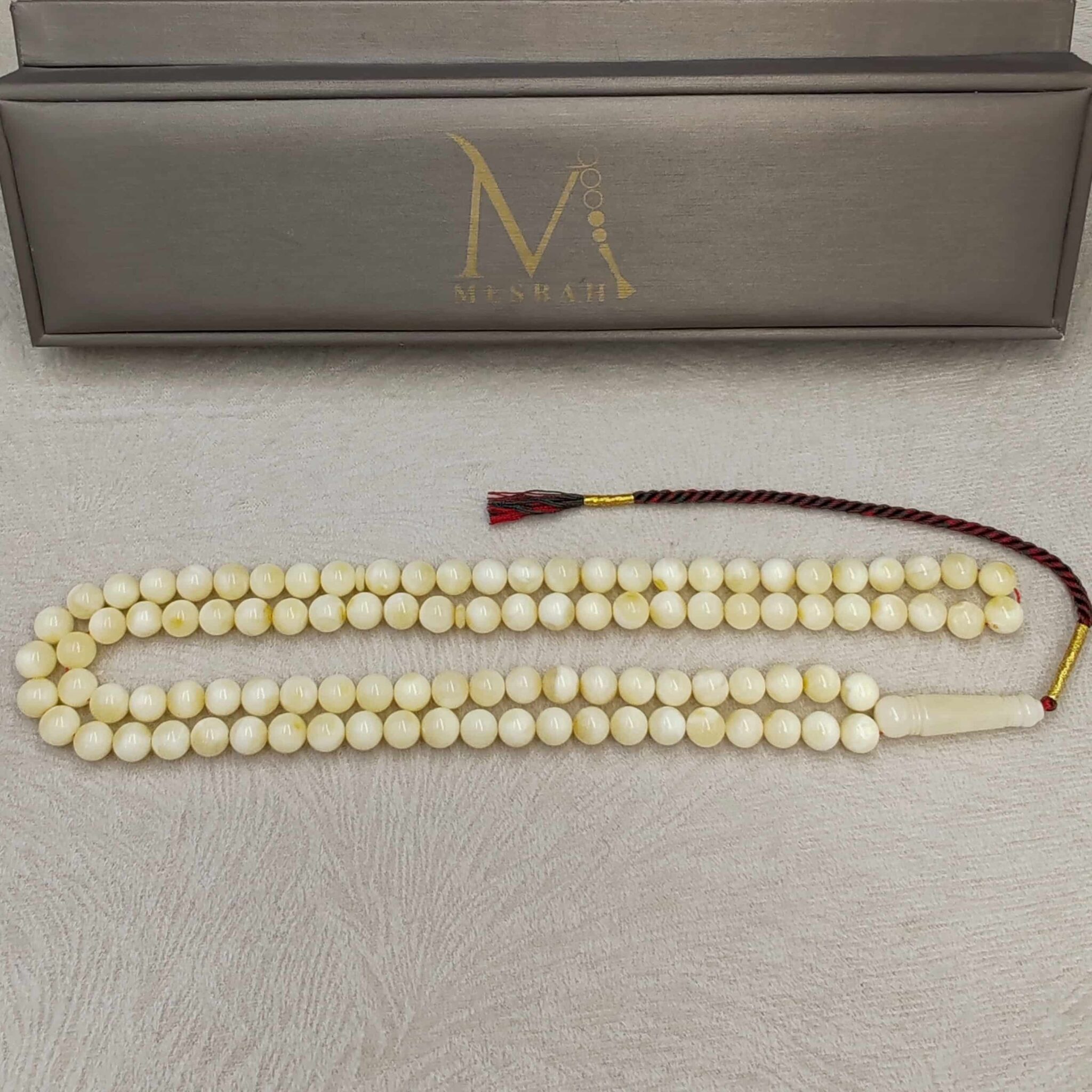 Natural Compressed Lamb Horn Mesbah 45 Beads Size 10/12.5 mm Weight 49g