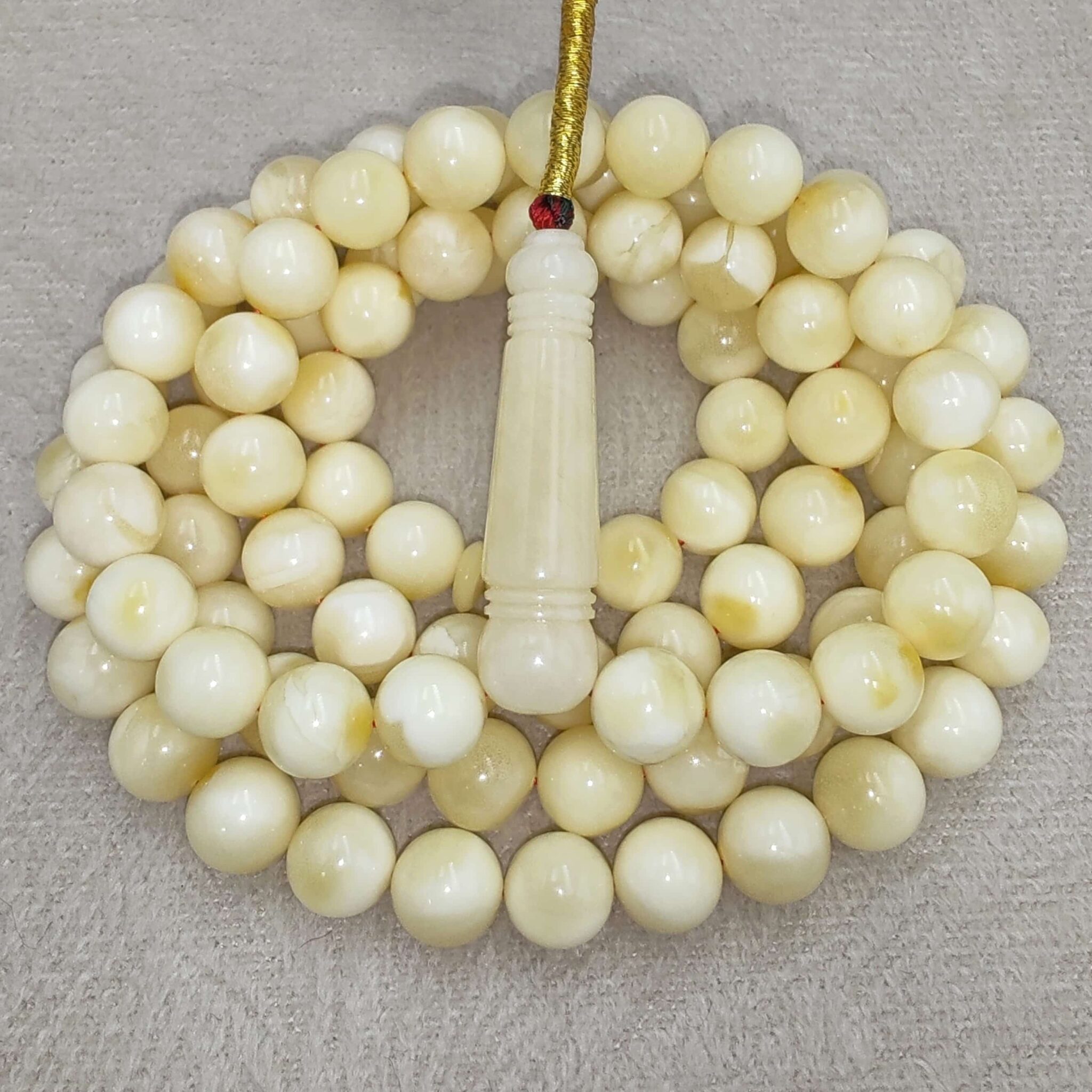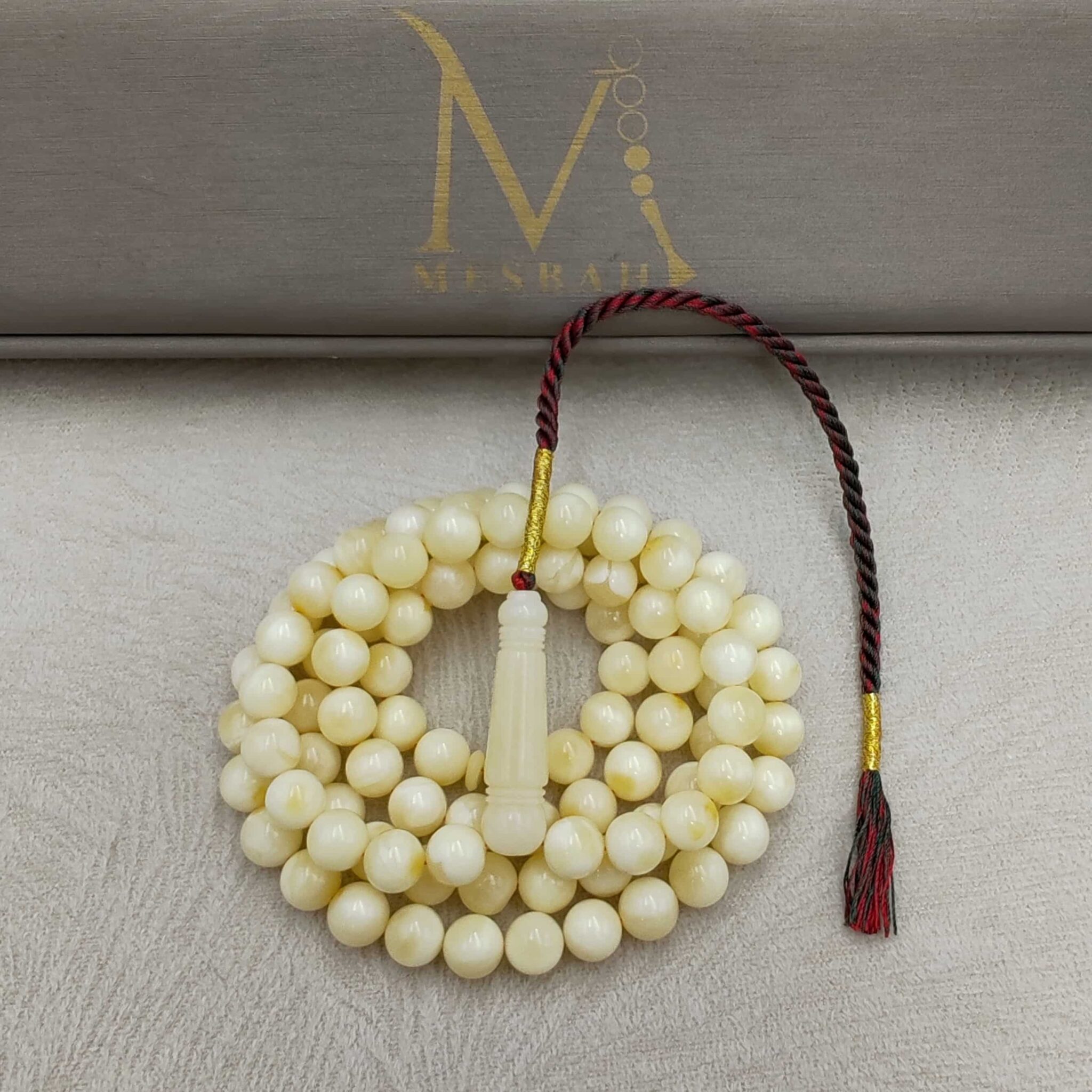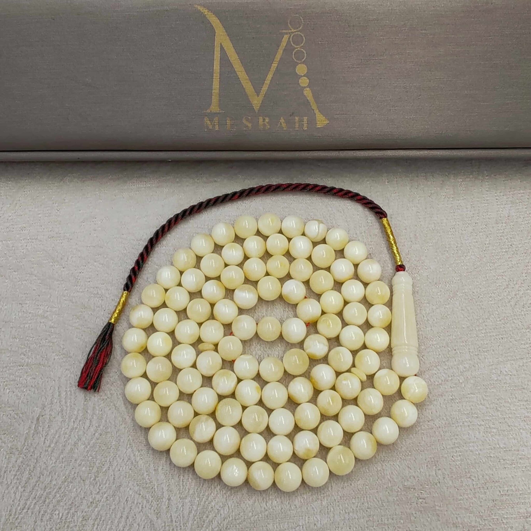 Natural Compressed Lamb Horn Mesbah 45 Beads Size 10/12.5 mm Weight 49g