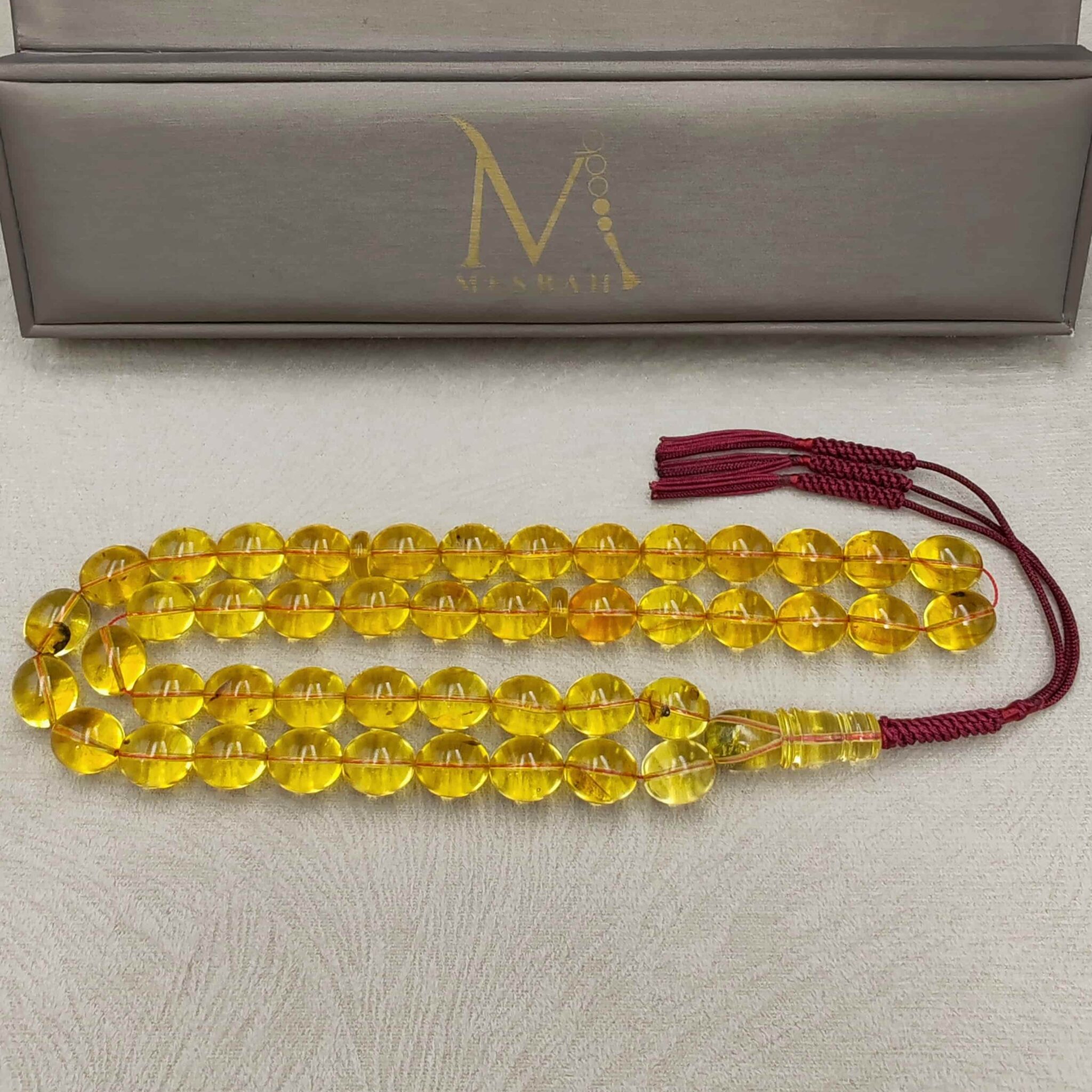 Natural Compressed Lamb Horn Mesbah 45 Beads Size 10/12.5 mm Weight 49g
