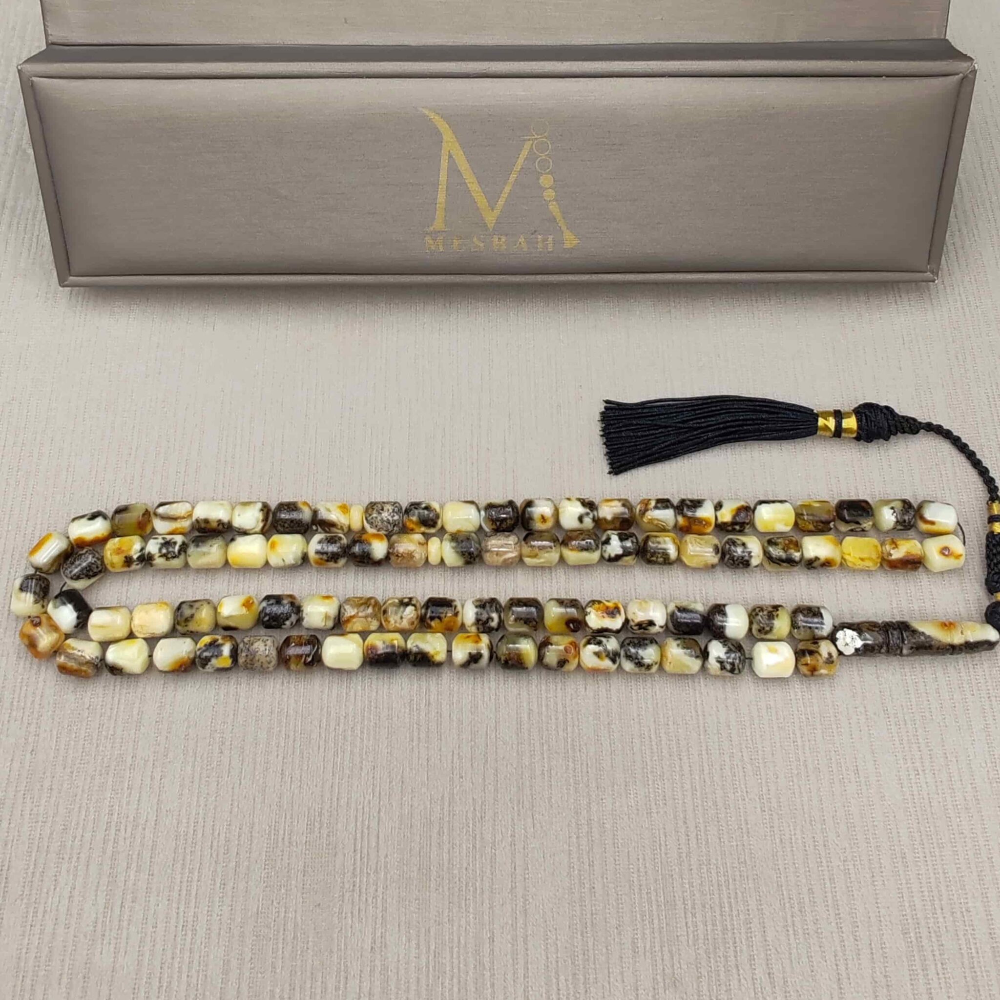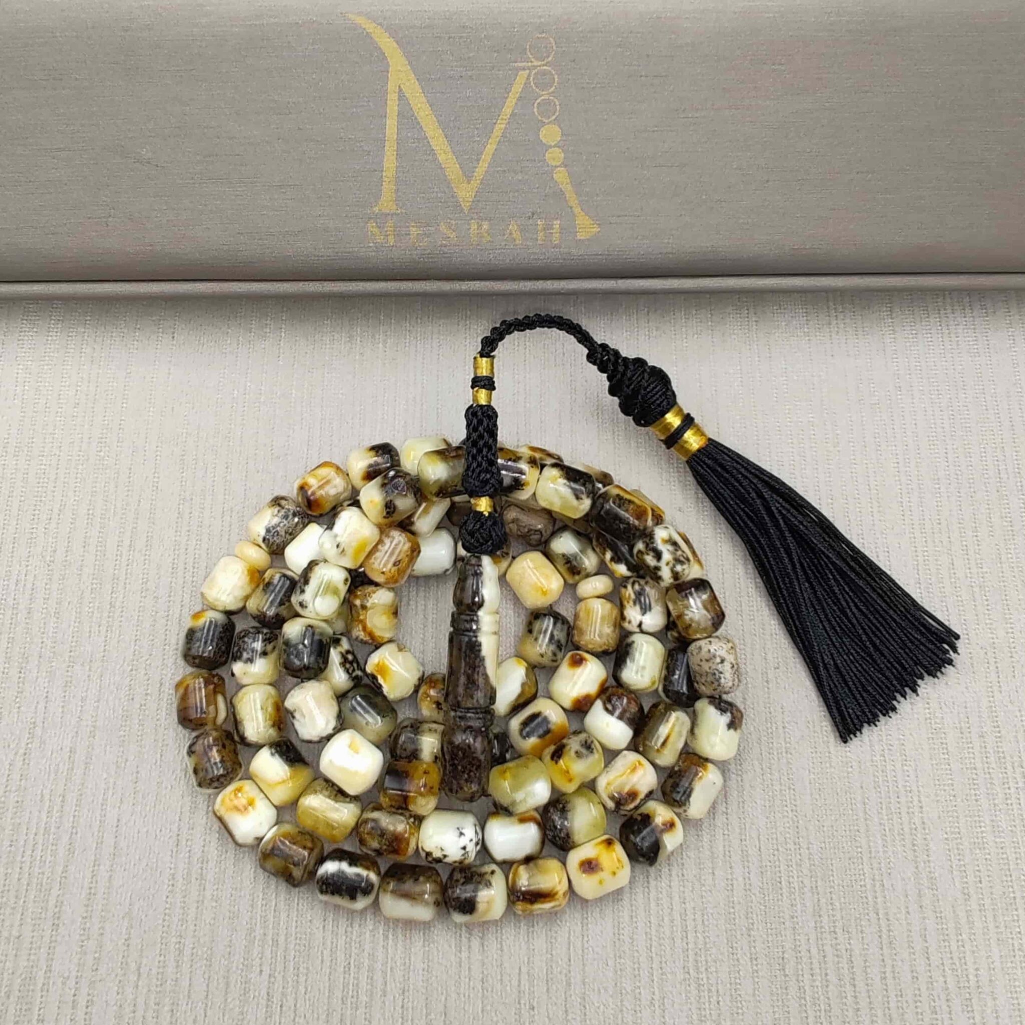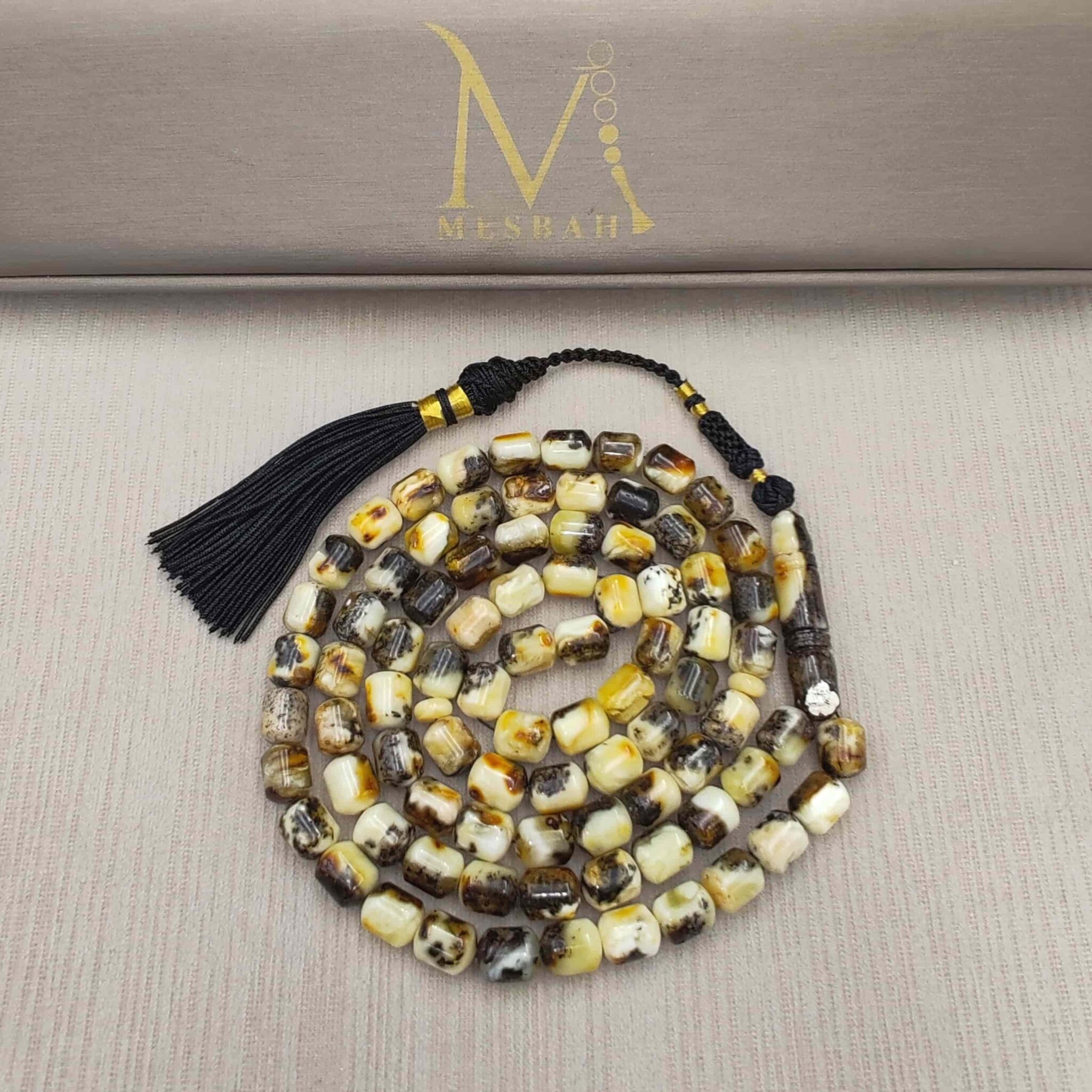 Natural Compressed Lamb Horn Mesbah 39 Beads Size 12 mm