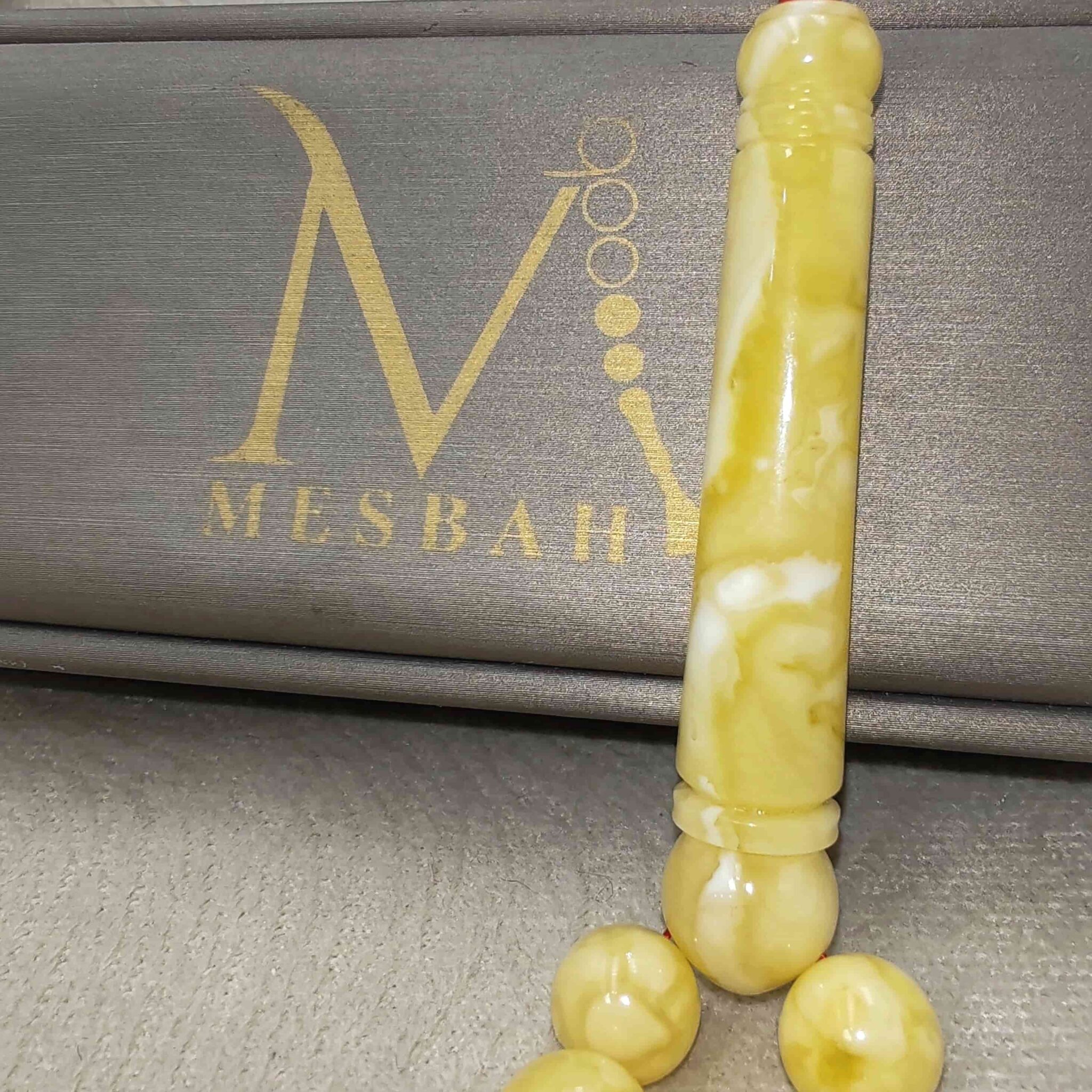 Natural Compressed Lamb Horn Mesbah 45 Beads Size 10/12.5 mm Weight 49g