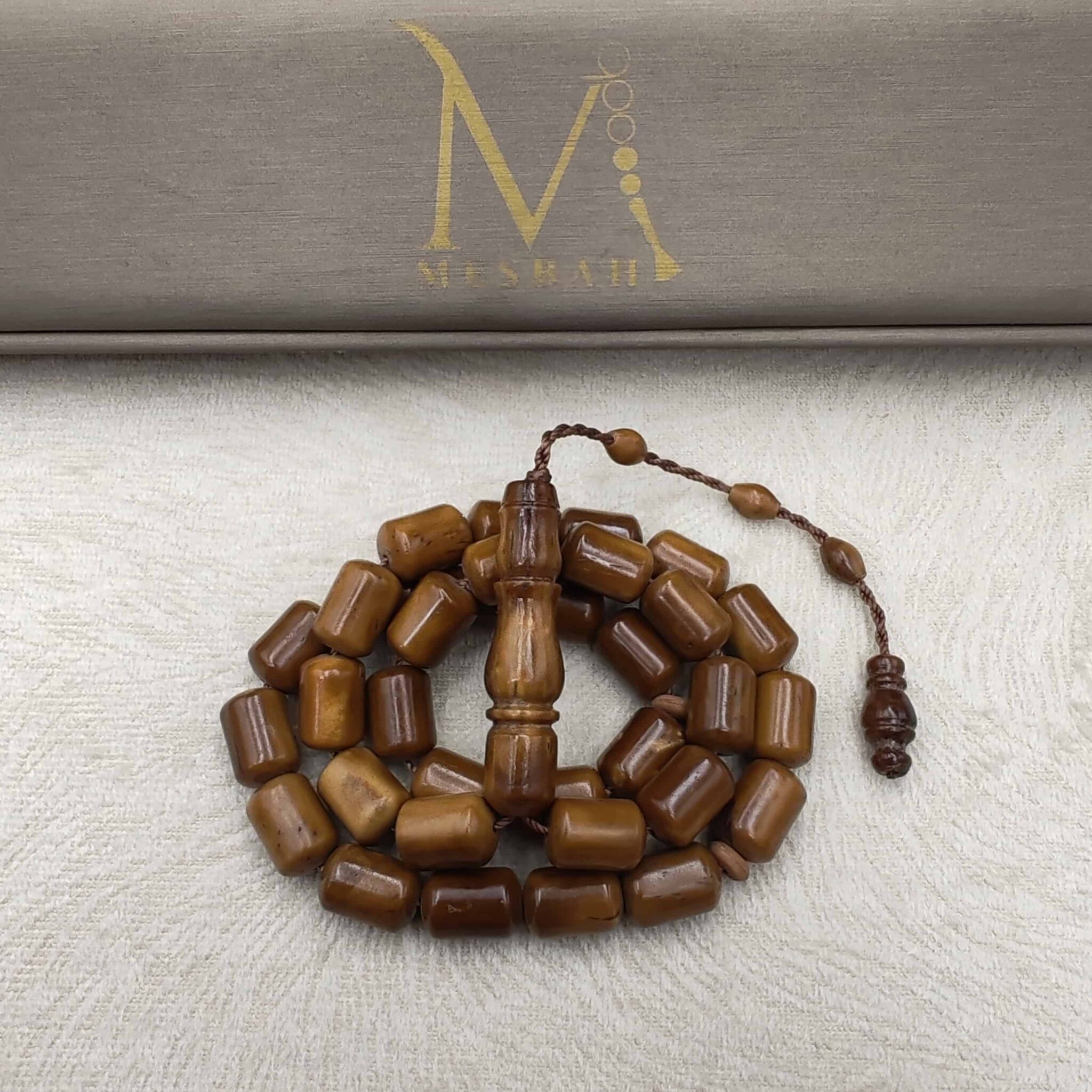 Natural Compressed Lamb Horn Mesbah 39 Beads Size 12 mm